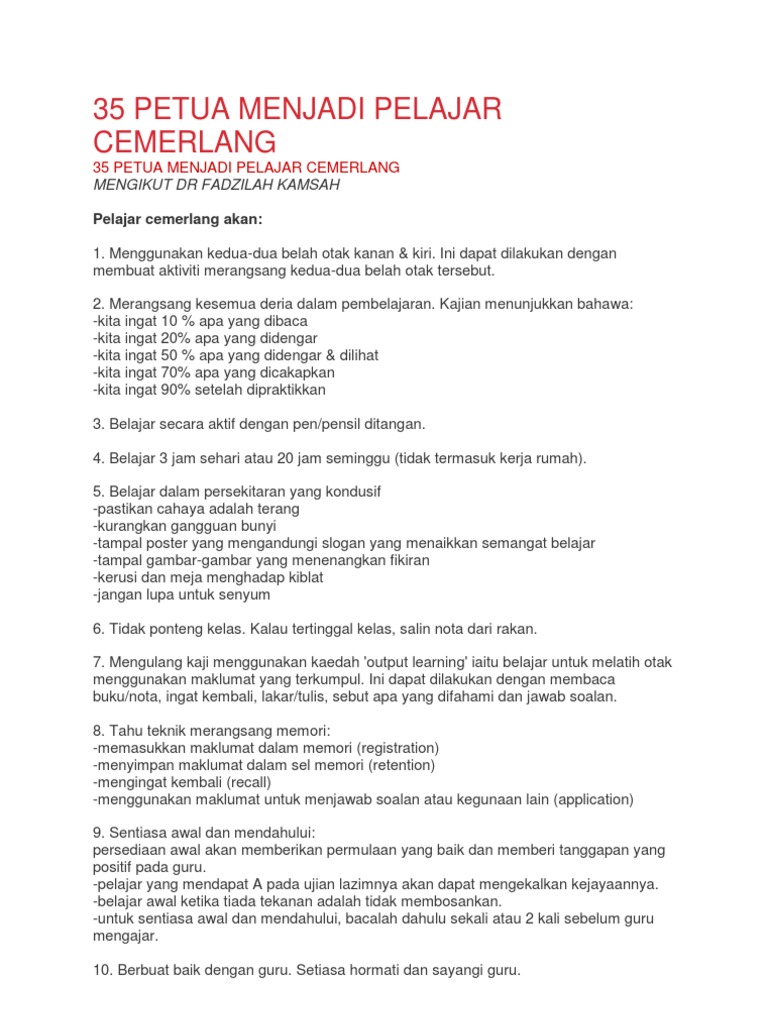 35 Petua Menjadi Pelajar Cemerlang Pdf